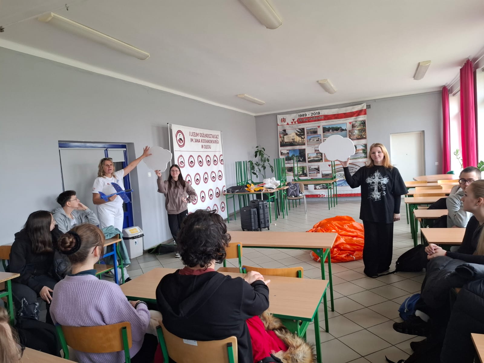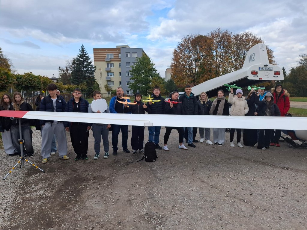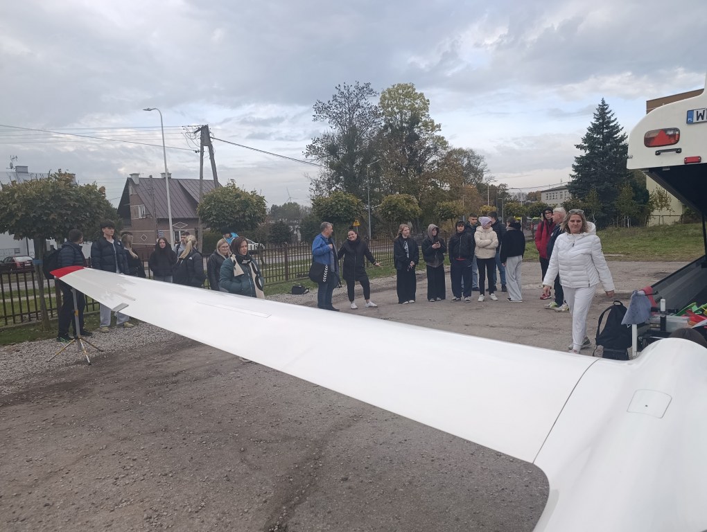 Uczniowie naszego liceum wzięli udział w wyjątkowych zajęciach z edukacji lotniczej, podczas których mogli poczuć się jak prawdziwi piloci! Młodzież miała okazję zasiąść w kabinie szybowca, poznać zasady jego startu i lotu oraz z bliska zobaczyć, jak wygląda czasza spadochronu.
