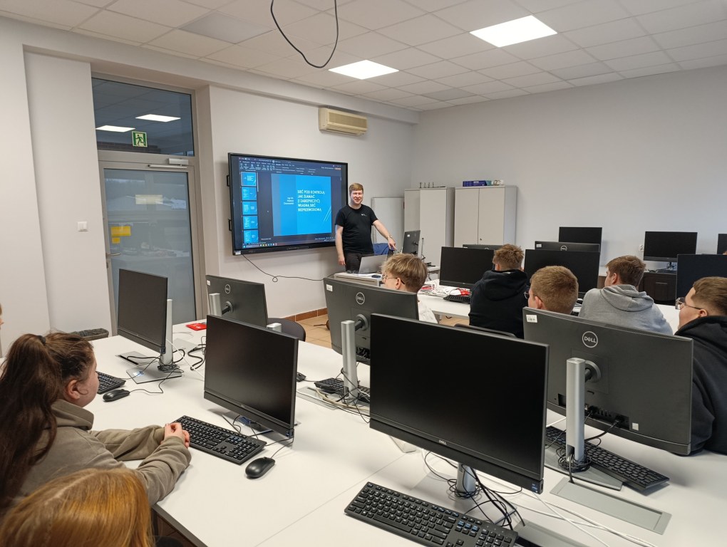 Dużym zainteresowaniem cieszyły się warsztaty z cyberbezpieczeństwa. Uczniowie dowiedzieli się, jak analizuje się podatności sieci Wi-Fi, jakie narzędzia stosują pentesterzy i jak skutecznie zabezpieczyć domowe sieci.