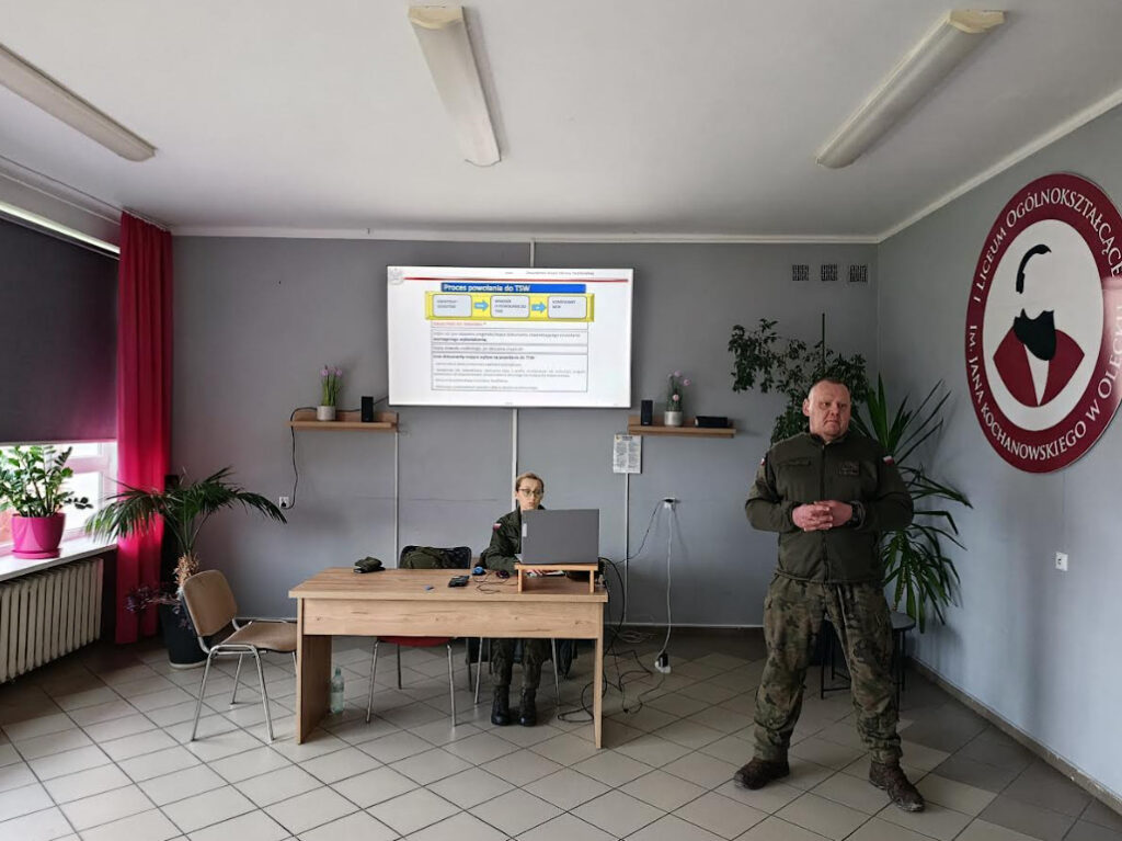 Przedstawiciele WOT w prosty sposób wyjaśnili, czym zajmują się terytorialsi — ochotnicy służący w piątym rodzaju Sił Zbrojnych RP, którzy nie tylko uczestniczą w obronie kraju, ale przede wszystkim wspierają lokalne społeczności, np. w czasie sytuacji kryzysowych i klęsk żywiołowych.