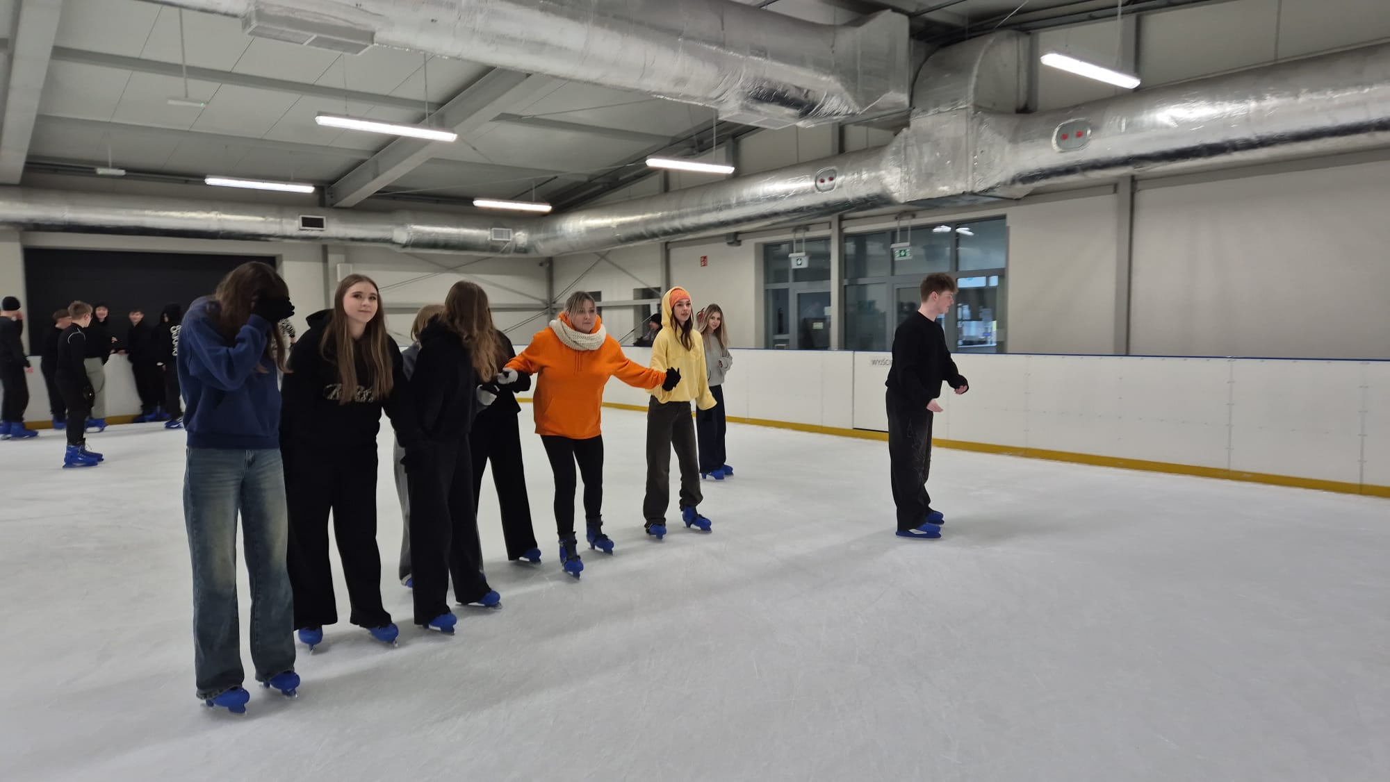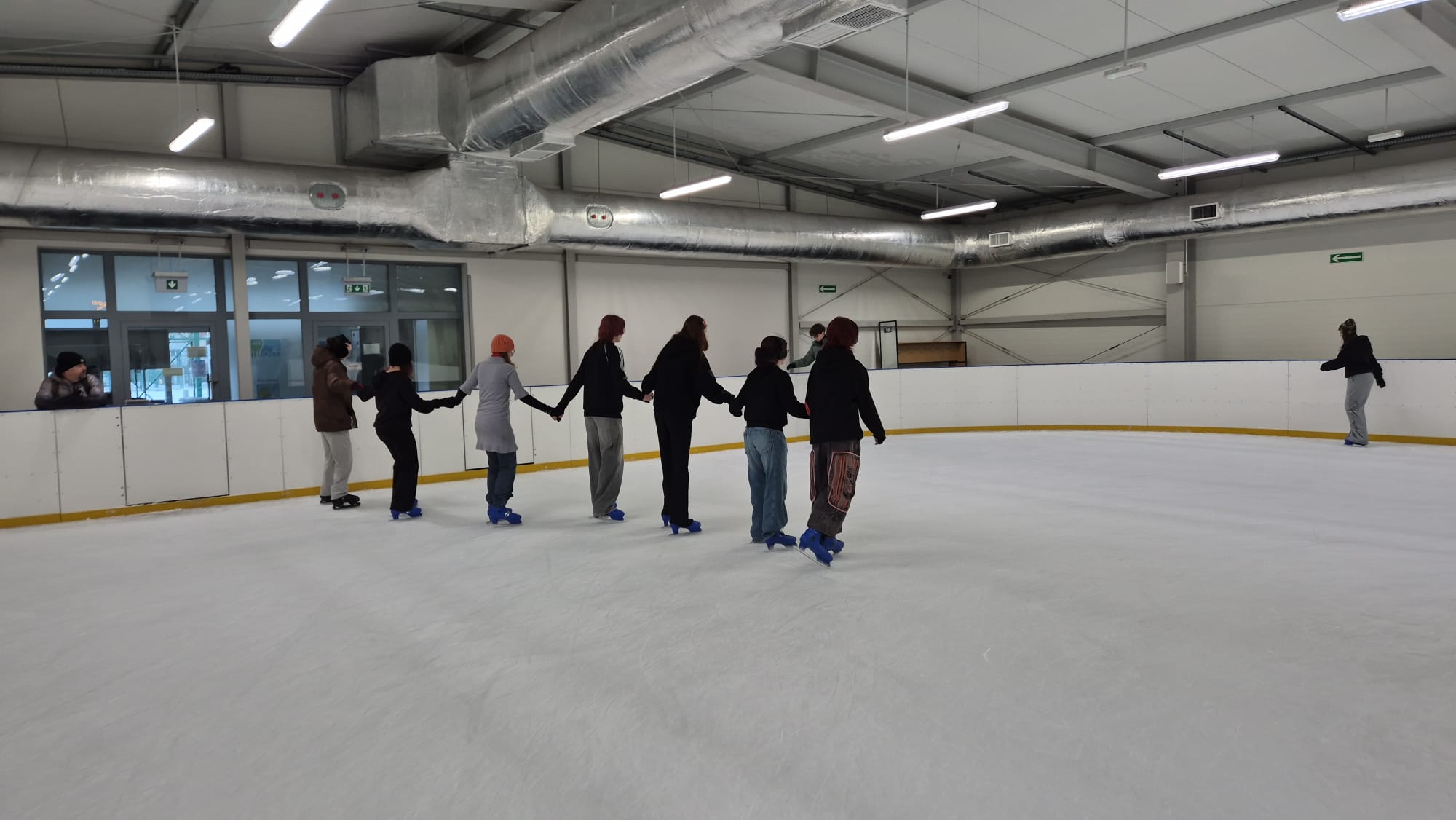 Pierwszym punktem programu było lodowisko w Ełku, gdzie młodzież mogła sprawdzić swoje umiejętności jazdy na łyżwach. Zarówno doświadczeni łyżwiarze, jak i początkujący, świetnie bawili się na lodzie. Nie zabrakło zabaw grupowych, wyścigów. Opiekunowie dbali, aby każdy czuł się bezpiecznie i mógł aktywnie uczestniczyć w zajęciach.