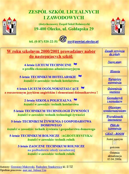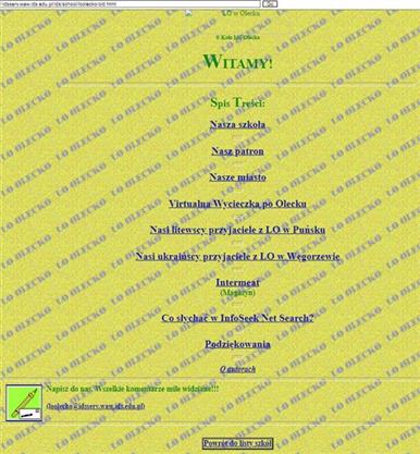 Pierwsze strony WWW Liceum Ogólnokształcącego w Olecku w 1995 r.
