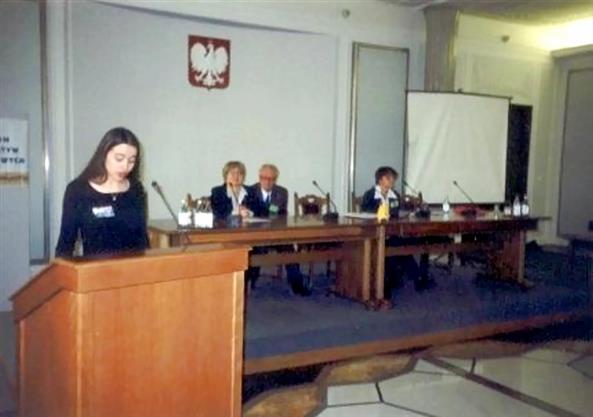 Uczennica liceum Beata Szemis w sali Sejmu Rzeczpospolitej Polskiej na VIII
