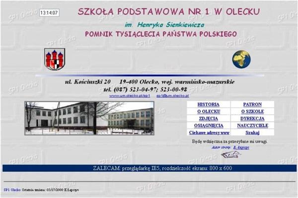 razem z uczniami wykonali strony WWW: szkoły Podstawowej nr 1 w Olecku - Ewa