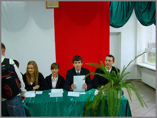 Uczniowie rozpowszechnili informacje o wyborach, przygotowali salę , a Szkolna